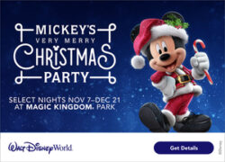Mickey’s Very Merry Christmas Party Select Nights from November 7 – December 21, 2025 Guests can Experience the Holiday Magic at Magic Kingdom® Park Do you still believe in holiday magic? Discover it again as you step into a Yuletide tale full of warm and wonderful traditions during Mickey’s Very Merry Christmas Party at Magic Kingdom® Park. Join Mickey and… View Article »